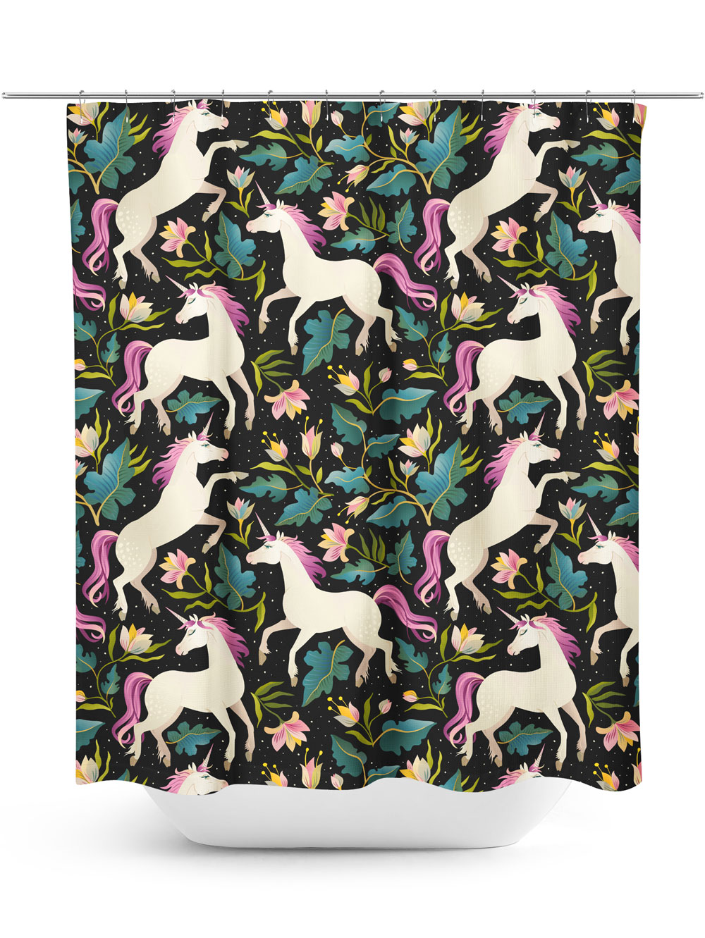 About the Prancing Unicorns Shower Curtain: